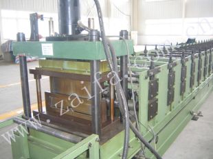 1)、板材材料采用彩鋼板2)、成型速度:5-6m/分鐘3)、成型輥輪材料:采用GCr15軸承鋼淬火處理。4)、主動軸材料:采用優(yōu)質碳素鋼調質處理。5)、沖孔切斷模具:采用模具鋼淬火處理。6)、機架形式:主體采用H型鋼或型材焊接,表面氧化皮拋丸處理。工藝流程開卷 → 校平并主動送料 →沖連接孔及Φ26圓孔 →板材輥壓成型 → 成型切斷 → 成品托料出板生產線組成1)、手動內撐式開卷機:采用電機主動送料,氣動式輥輪壓緊卷材,手動裝料及手動連桿式撐緊卷材。2)、自動內撐式開卷機:采用電機主動送料,氣動式輥輪壓緊卷材,手動裝料及液壓連桿式撐緊卷材。3)、校平、主動送料機:采用七輥校平輥及兩組主動送料輥,對卷材進料后整平及積極送料。4)、沖連接孔及Φ26圓孔機:采用液壓停機在板上沖前后端連接長孔及前后端Φ26圓孔一次沖制,并且Φ26圓孔左右位置手動絲桿調節(jié)(電腦自動控制)。5)、板材滾壓成型機:采用20組輥輪成型。6)、板材成型切斷機:切斷采用電腦自動控制定長,停機液壓切斷。7)、托料裝置:采用被動成品托料出板。